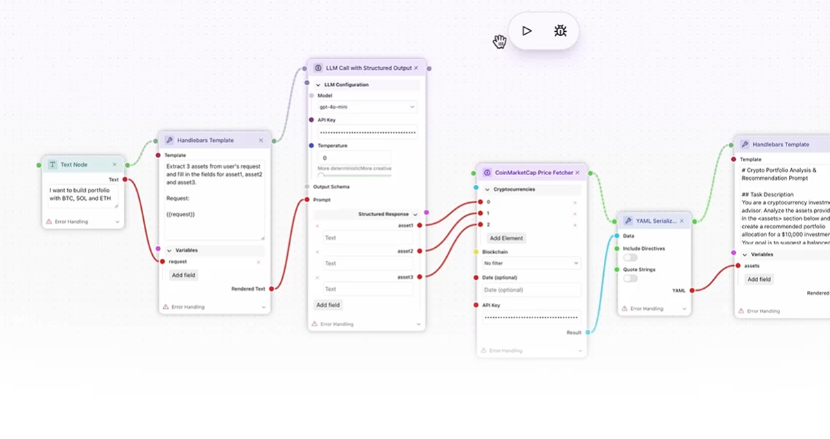 Your agent`s power comes from its actions. Native MCP integration means thousands of tools are one connection away. Blockchain nodes enable DeFi operations. Build custom tools as subflows.